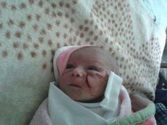 Bayi perempuan Suriah yang belum genap 8 hari terluka akibat serangan udara tentara Bashar Asad.