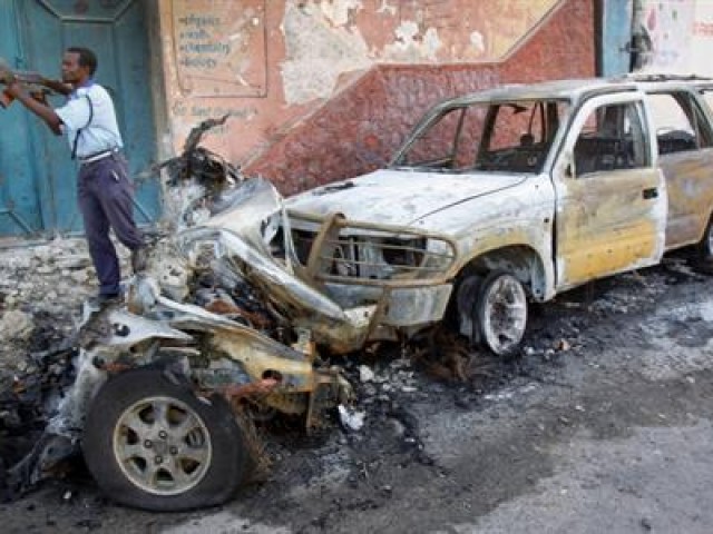 "Sebuah mobil sarat dengan bahan peledak diledakkan dari jarak jauh dan meledak di depan sebuah toko teh di luar bandara," polisi senior Kolonel Abdikadir Ahmed mengatakan kepada Reuters.
